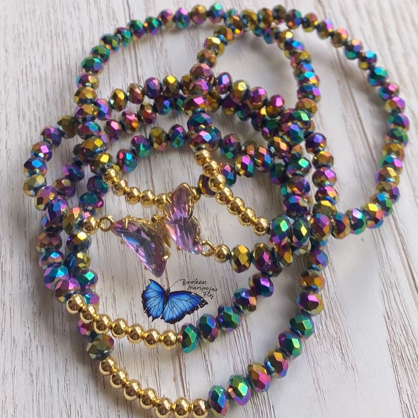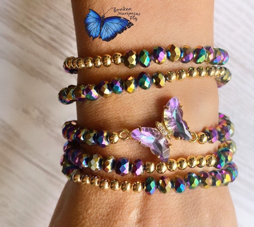 Set of 5 bracelets, crystals, gold filled